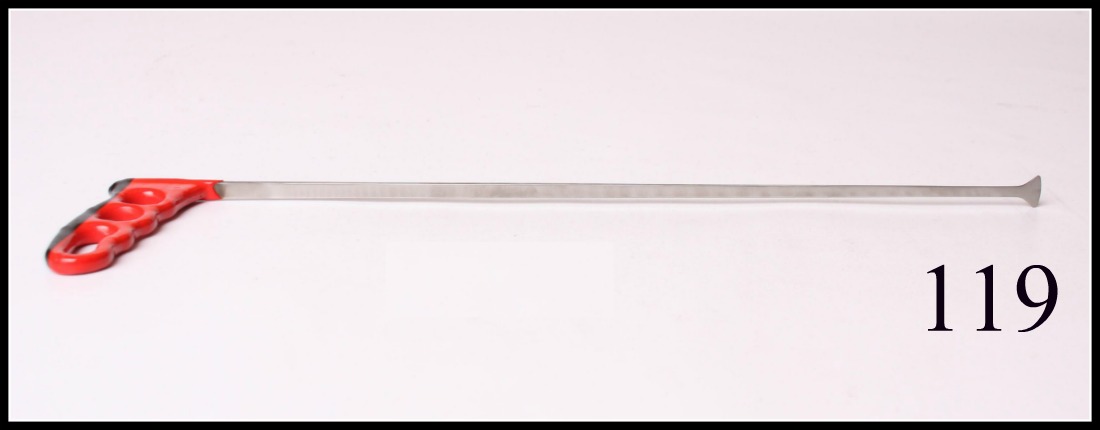 This double bend 3/8 diameter tool with an extra stiff small diameter that makes it an excellent pry tool with a small bullet tip with 4 inches of throw. Preferred for its ease of use and capability of pushing or twisting dents on any panel. Also available with adjustable T handle for $165.00.