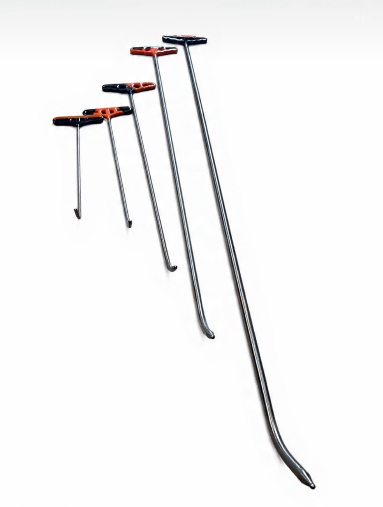 The MT Set of 5 “Cherry Popper” Tools includes the following tools: 614, 618, 651, 652, and 608. The 5 rods are made for techs looking for a softer pushing tool designed to carry the R4 “Cherry Cap”. All of these tools are very stiff for their length. The sixth sharp tool, number 280 can be added (7/16 diameter, 33″ long) to this set by request. All of the tools are built with our fixed “T” handle.